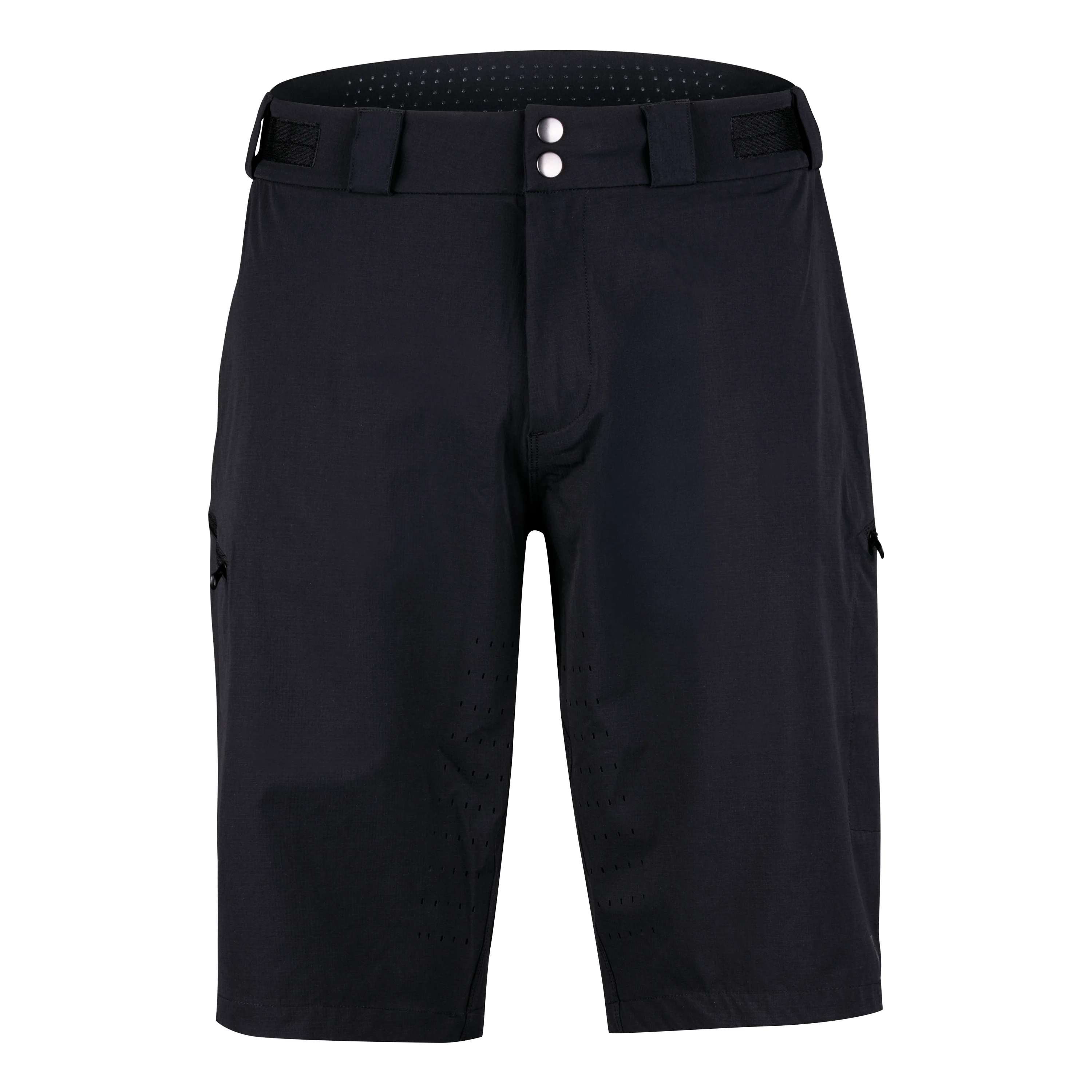 Zvyšte úroveň svého ježdění s našimi prémiovými kraťasy! Navrženy pro vášnivé cyklisty, tyto kraťasy kombinují špičkový design s funkcionalitou. Elastický pas se suchým zipem zajišťuje bezpečné nošení, zatímco odolné zapínání na zip, dva druky a háček drží kraťasy na místě. Dvě přední kapsy s praktickou vnitřní kapsičkou na klíče nabízejí snadný přístup k nezbytnostem. Silikonové protiskluzové tečky na zadní straně pásu a ventilační dírky na nohavicích zajistí pohodlí i při náročných jízdách. Připravte se na stezky s jistotou a stylem!